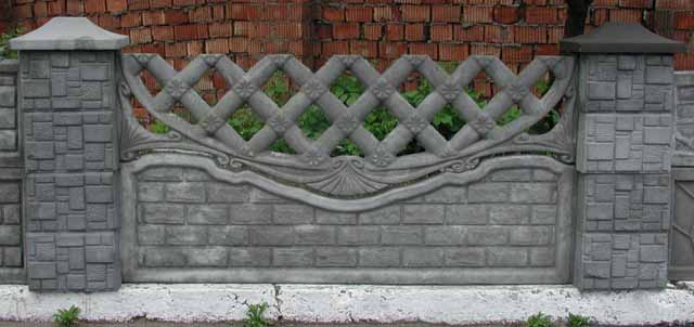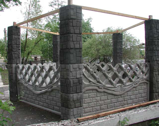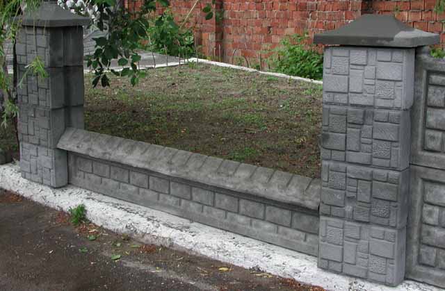 А также заборы выполненные из прессованных элементов (кубов) со вставной металлической решеткой и шляпками.